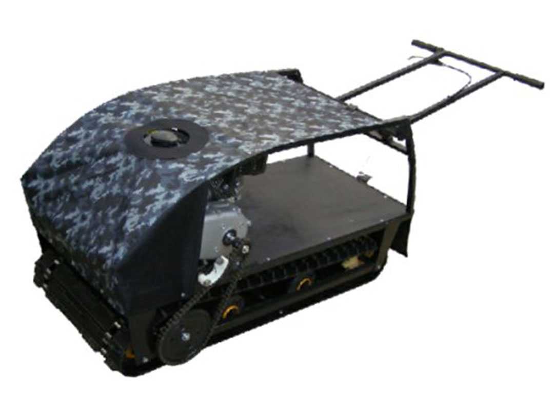 Этот буксировщик может без проблем преодолевать труднопроходимые участки, поскольку вес человека в нем равномерно распределен между санями и самим буксировщиком. Двигатель на 6,5 л.с. разгоняет агрегат до 25 км/час, благо габариты модели небольшие. Общая грузоподъемность – вместе с прицепом или санями – достигает 170 кг. Что характерно, мотор при перегрузках не глохнет, поскольку редуктор с центробежным автоматическим сцеплением выступает в данном случае в роли трансмиссии.