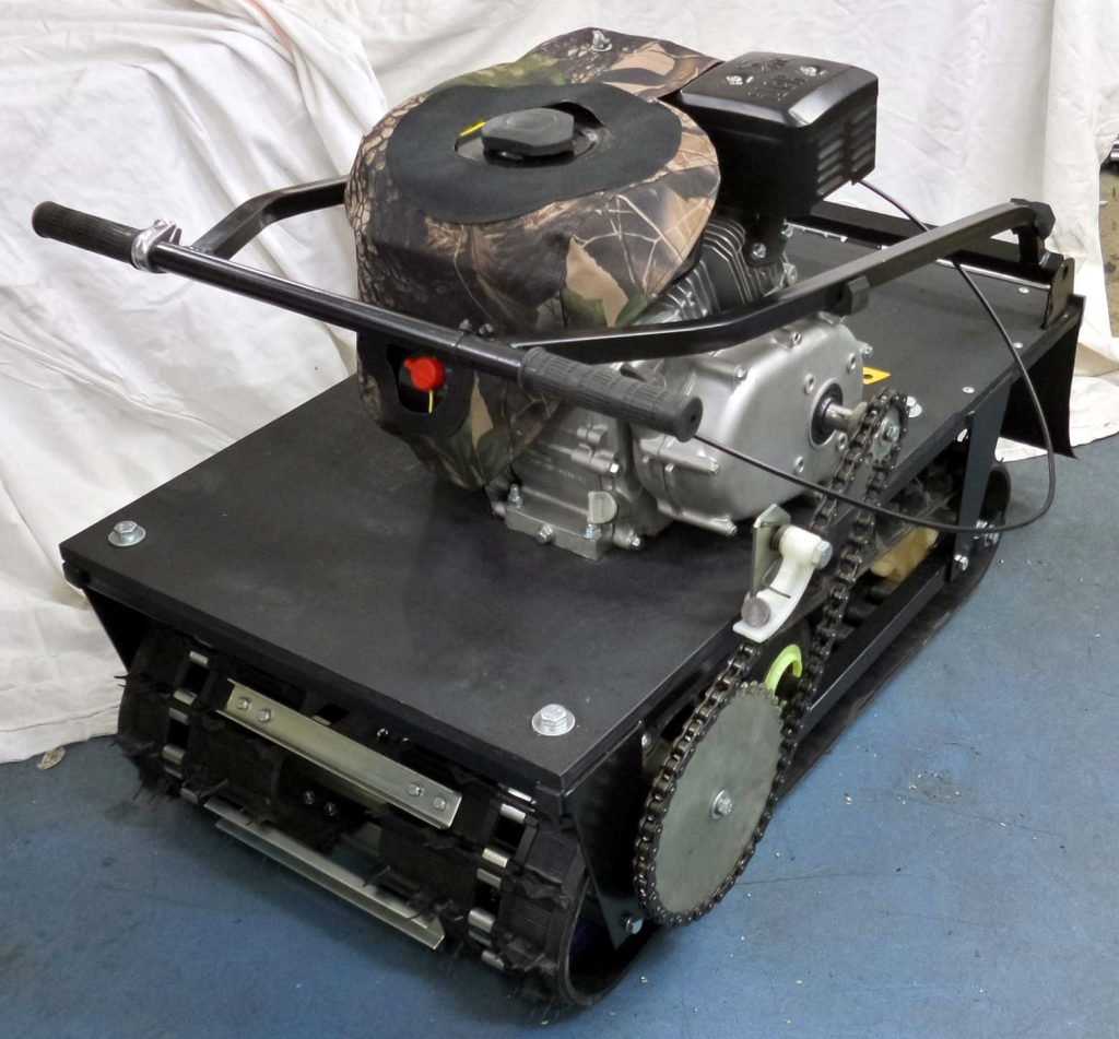 В частности, для этого буксировщик оснащен широкой гусеницей в 500 мм, благодаря которой удалось добиться приличной грузоподъемности и курсовой устойчивости. К тому же, более широкая гусеница предотвращает опрокидывание машины на неровной местности, либо при выполнении резких маневров. В целом, поведение буксировщика с такой гусеницей более стабильно и надежно. Вместе с тем, конструкторы снабдили аппарат жесткой катковой подвеской, которая характеризуется плавным и мягким ходом, а также практически не пробивается на колеях, кочках и ямках. Кроме того, буксировщик имеет передний привод. Максимальная грузоподъемность может достигать 150 кг, если подключить сани-волокуши или сцепное устройство. Допустимая масса груза на буксировщике достигает 50 кг. Компактные габариты машины позволяют передвигаться в труднодоступной местности и выполнять маневры в лесной глуши, не опасаясь за столкновения с препятствиями, камнями или деревьями.