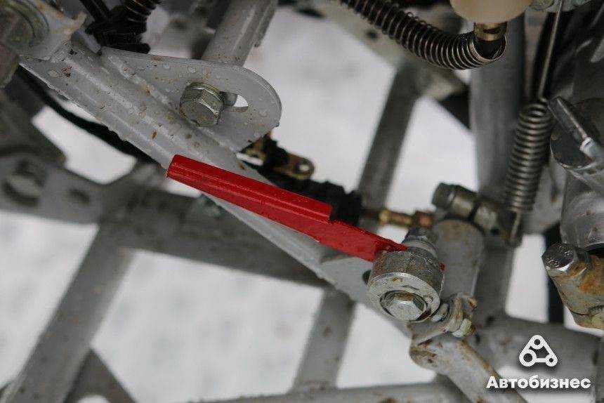 При этом требуется осторожно управлять дросселем карбюратора, не допустима позиция до упора. При сложностях с запуском двигателя рекомендуется применять кикстартер. Зимой вездеход не устанавливается на стояночный тормоз, чтобы предотвратить примерзание тормозных колодок к диску