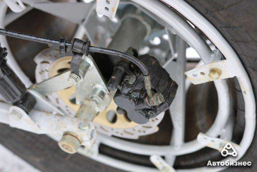 Передние и задние тормоза дисковые, оснащены гидроприводом. Управление передним тормозом осуществляется как на классических мотоциклах, то есть ручным приводом, локализующимся на руле. Задний тормоз управляется ножным приводом.