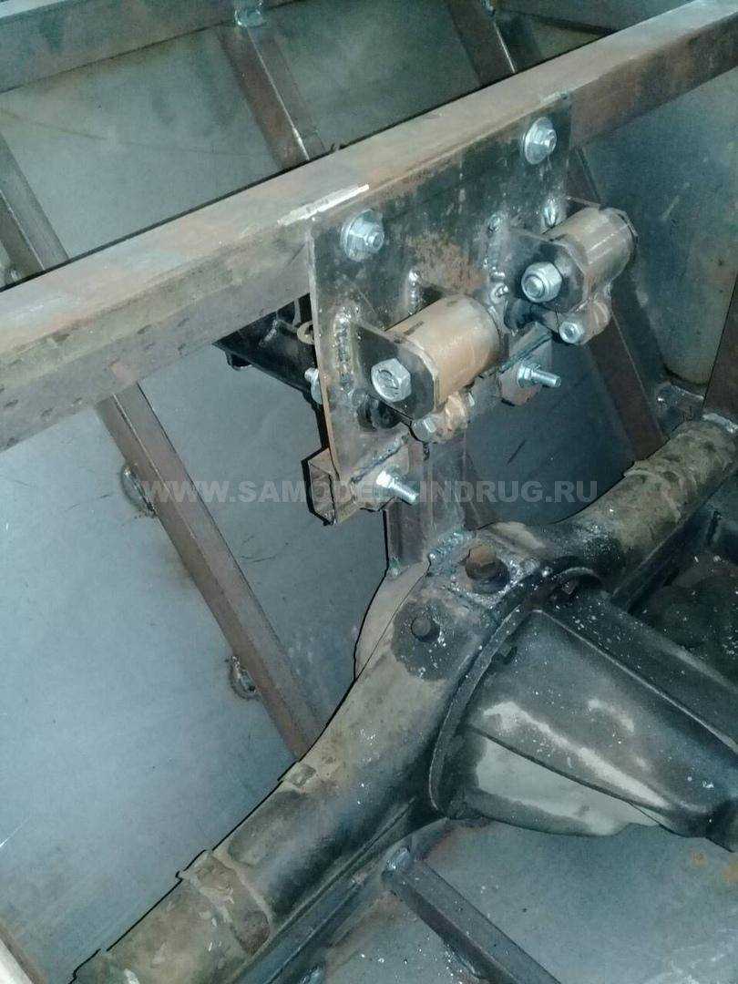 - Установить задний мост — переднюю и заднюю подвески, состоящие из стойки и рулевой втулки. Для этой цели подойдет мост ВАЗа либо другого отечественного автомобиля.