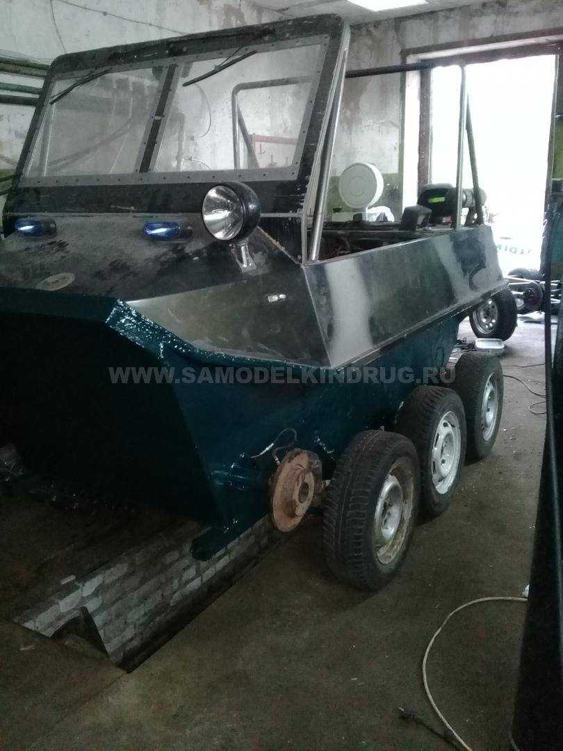 Рама сварена из профиля прямоугольного сечения следующих размеров: 40х40х20 мм, 40/40/1.5 мм, 20/20/1.5 мм, балки 50/50/20 мм. Толщина пластин ступиц составляет 10 мм, ступицы ВАЗ 2109 задние, корпус лодка благодаря чему вездеход плавает по воде и толщина металла 1.2 мм, колеса R-13