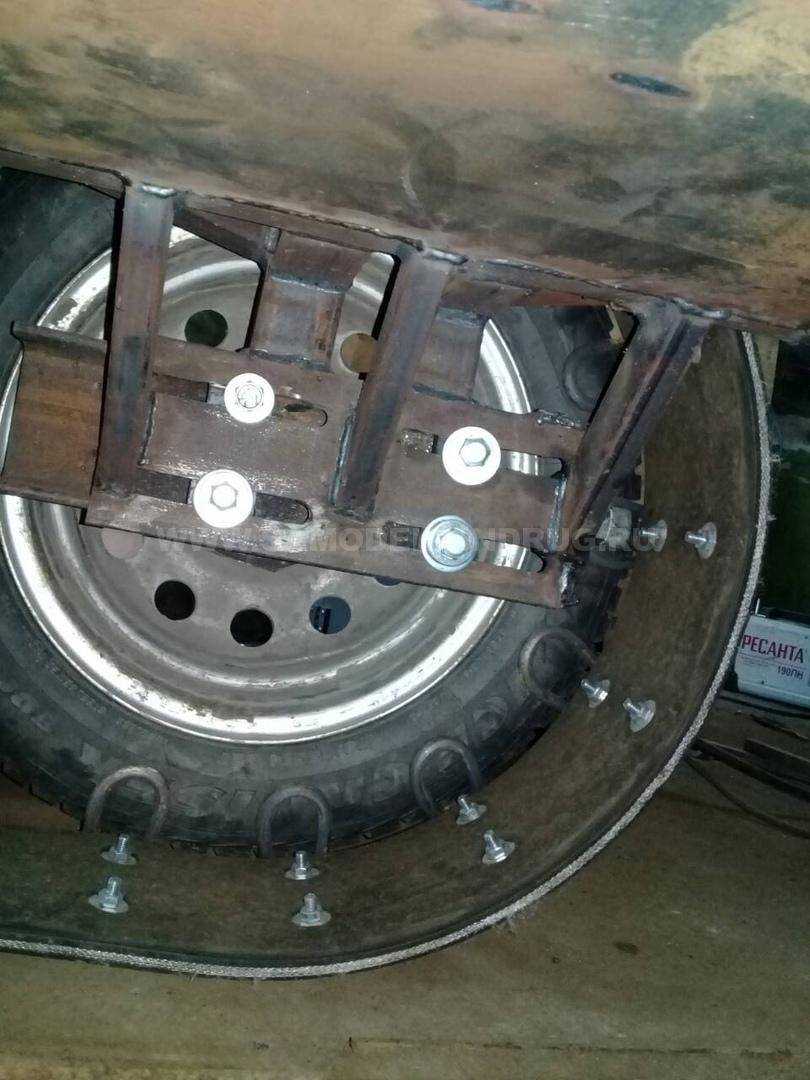 В некоторых моделях происходит проворот покрышек. Для его устранения ширину дисков рекомендуется уменьшить до 40 см. Дополнительно навариваются зубцы из электродов, и лишь потом усаживаются покрышки.