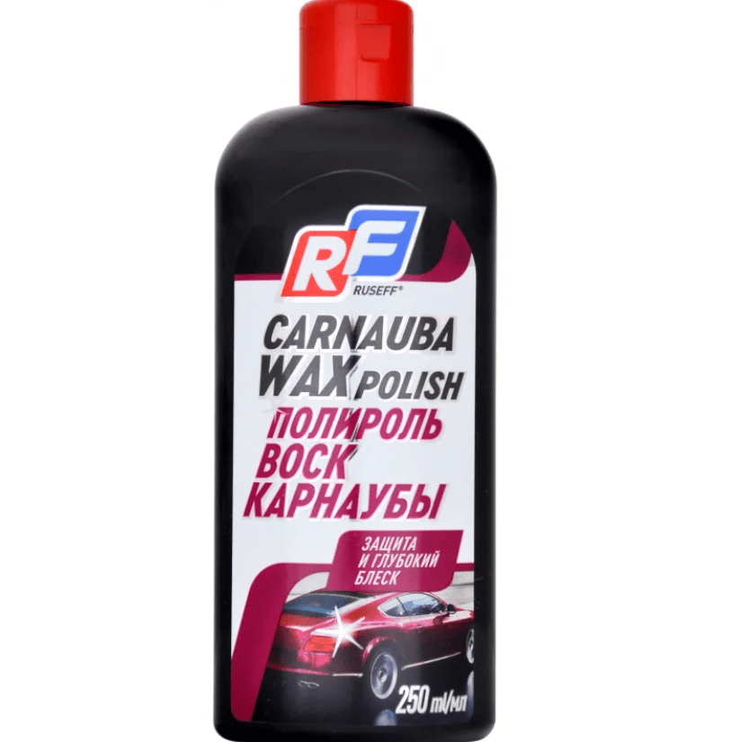 Одно из самых доступных средств на рынке, в состав которого входит воск карнаубы. Придает кузову чистый глубокий блеск и хорошо защищает от неблагоприятных условий. Рекомендован для применения в зимнее время года. Особенностью воска является полная безопасность при использовании на цветах: металлик, хамелеон и перламутр. Обработанные поверхности отлично сопротивляются воздействию битума, реагентов, крошке свежей разметки и так далее. Упаковка объемом 250 мл стоит сейчас примерно 350 рублей.