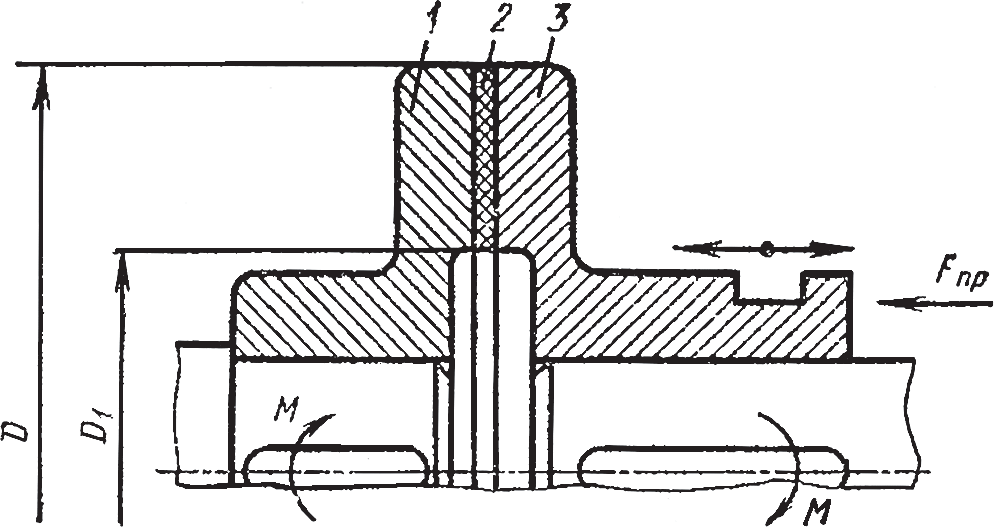 Дисковая муфта с одной парой поверхностей трения (рис. 9) приводится в рабочее положение прижимной силой Fпp.