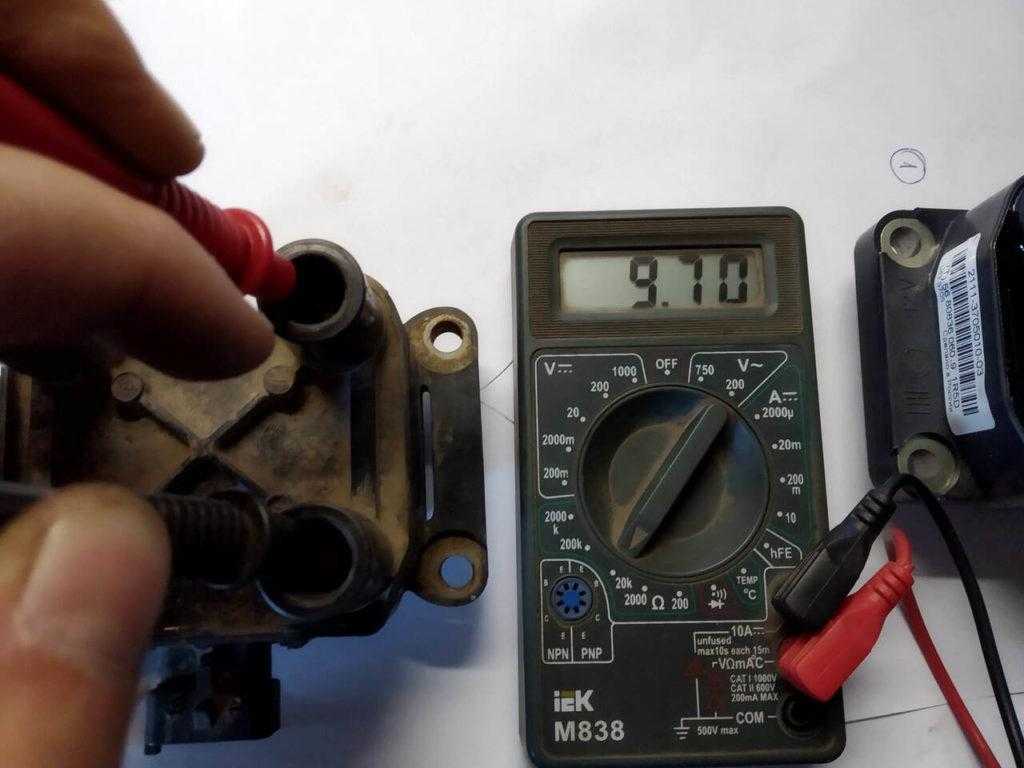 Для исправной бобины цифры в районе от 0,2 до 3 Ом считаются нормальными. Точные числа могут варьироваться от конкретного вида бобины и точности показателей мультиметра. Контакты «+» и «К» позволяют получить показатели в любой ситуации.