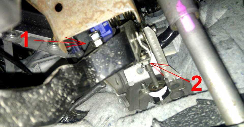Как избавиться от пробуксовки гидравлического сцепления? С помощью винта-упора с контргайкой (1) нужно установить удобное верхнее положение крайней левой педали. Контргайка на штоке главного цилиндра (2) отвечает за свободный ход педали. Его величина не должна превышать 5–10 мм.