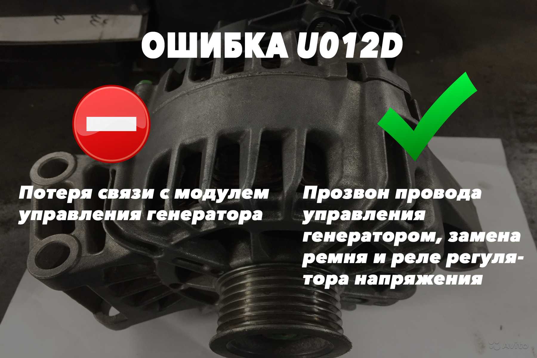Фактически на поведении машины U012D никак не сказывается, владельца Форд Фокус 3 будет смущать только вечно красующаяся подсвеченная лампочка даже при полном уровне заряда АКБ. Диагностику авто следует начать с прозвона провода управления генератора, который идет от фишки до PCM. Если с контактами все в порядке, потребуется замена ремня генератора и реле регулятора. Водителю нужно выполнить следующую работу: