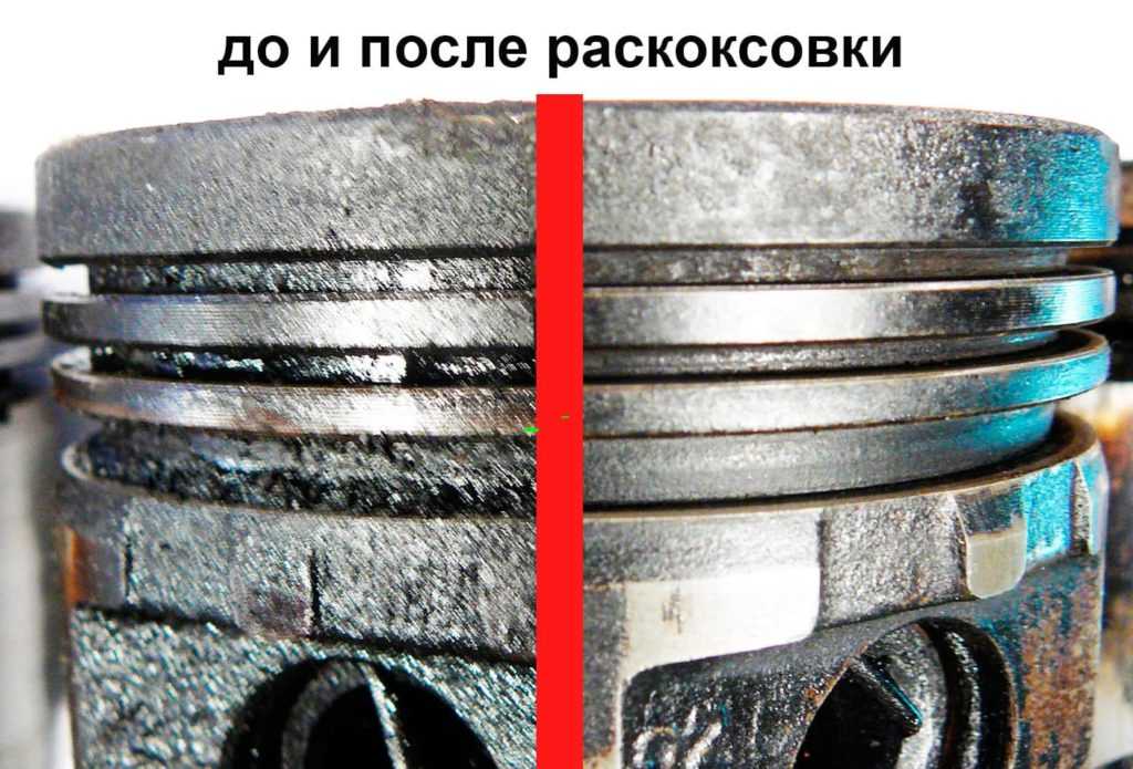 Нарастание слоя нагара на деталях двигателя делает узлы практически неисправными, хотя износа может и не быть. В негодность приходит вентиляция картера, сильно достается ЦПГ. Поршневые кольца «залегают». Покрытые вязкой смесью, они залипают в своих канавках, не создают компрессию, пропускают картерные газы, не снимают лишний смазочный материал со стенок цилиндра, А кроме того способствуют плохому отведению тепла и в конечном счете увеличению износа.