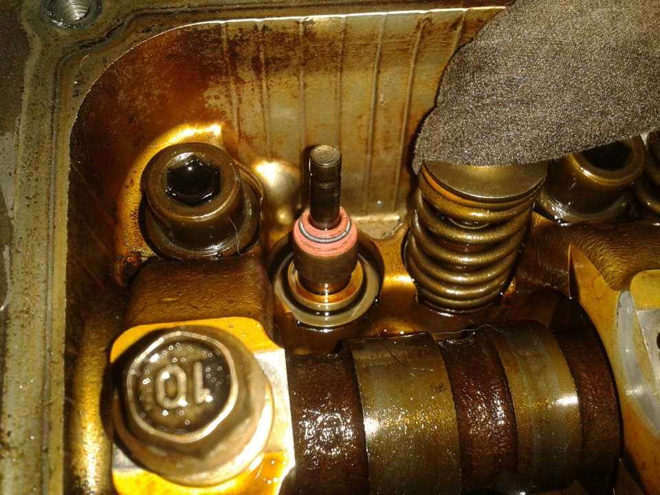 Маслосъемные колпачки предназначены для удержания смазки от проникновения в зазор между стержнем клапана и направляющей втулкой. Колпачки являются резиновыми сальниками, охватывающими эластичной частью стержень клапана. Для уплотнения они охвачены пружинками. Уплотнители со временем изнашиваются, твердеют, теряют гибкость. Потере своих свойств и скорейшему износу способствует перегрев мотора. Бывает, что соскакивает пружинка, или сам колпачок слетает с посадочного места — направляющей втулки клапана. Выработка последних способствует повышенному износу резины. При этом изнашивается и стержень клапана. В результате в сопряженной паре образуется люфт, и клапан разбивает маслосъемный колпачок, шатаясь из стороны в сторону, либо прижавшись к одной стороне.
