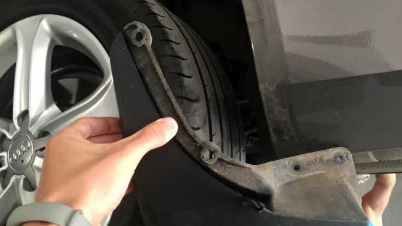 - Слишком твердые, пластиковые брызговики могут оборваться при съезде с тротуара, повредив также крепление подкрылков.