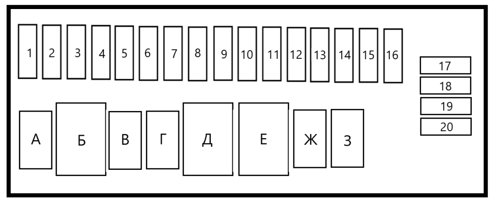 Они имеют следующий вид расположения предохранителей: Расшифровка: