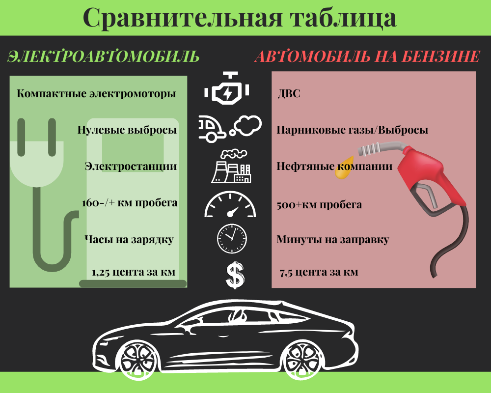 В связи с этим сокращено до минимума количество трущихся деталей, а значит сэкономлена значительная часть средств и времени на техническое обслуживание и ремонт. А о разнице в стоимости между бензином и электричеством и говорить нечего. Как видим, по сути, электромобиль — это более более эффективное и одновременно более простое транспортное средство.