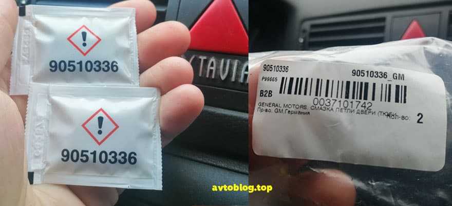 Для тех, кто не хочет колхозить есть специальная смазка от компании General Motors с артикулом GM 90510336, цена вопроса около 1,7 доллара (в рублях писать бессмысленно, я два года назад покупал за 70 рублей, в конце 2021 года стоит 114 за пакет). Данная смазка наносится очень тонким слоем и одного пакета хватает на все четыре двери (особенно для смазки доводчиков).