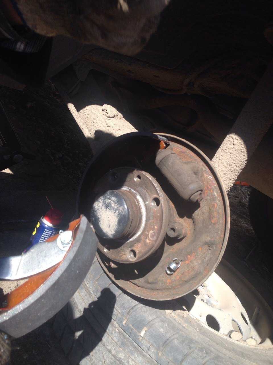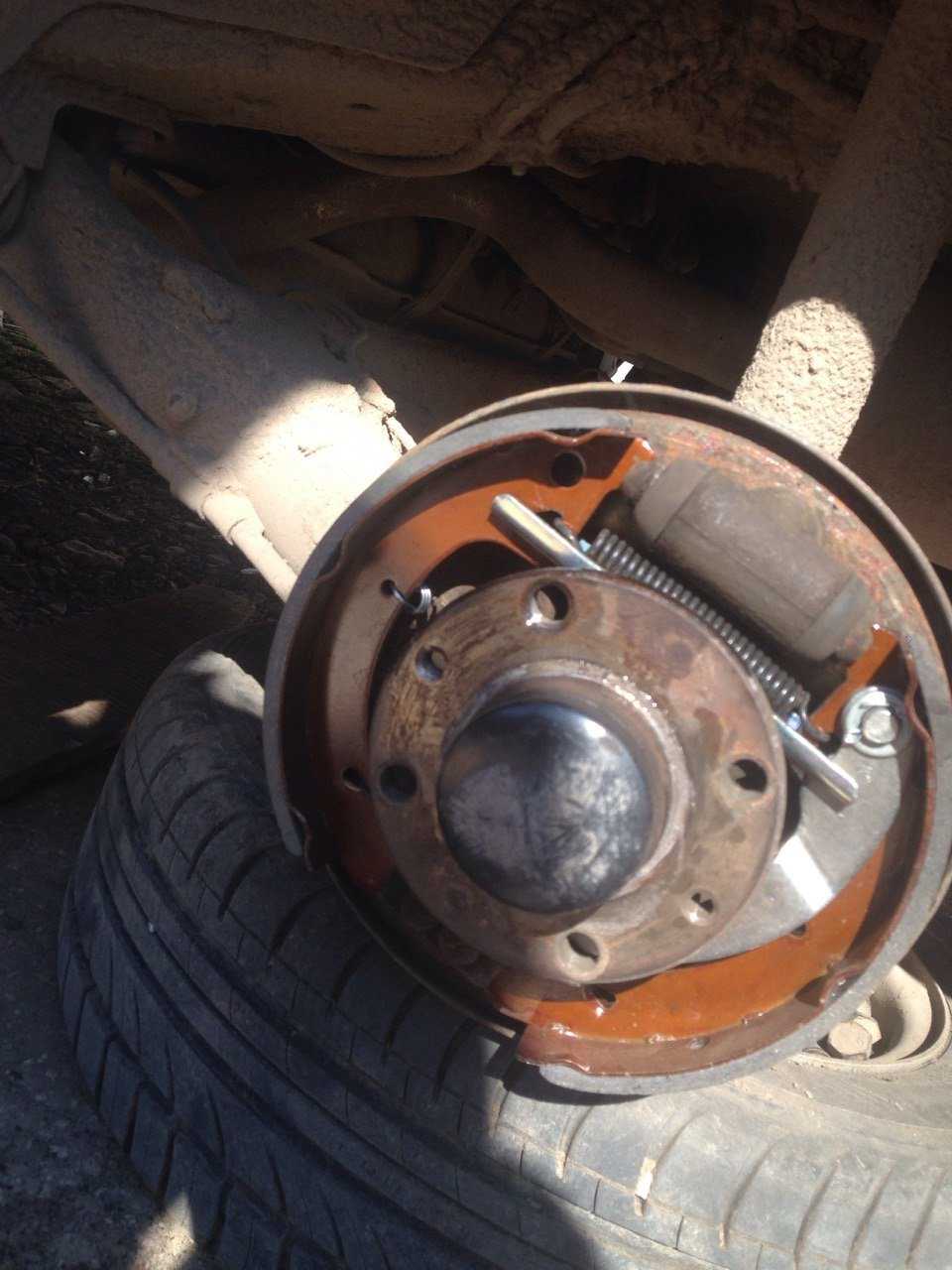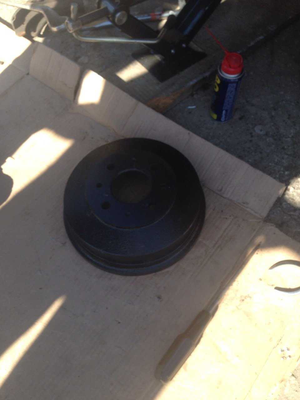 Следующим шагом нужно было нацепить барабан, с этим возникли проблемы, он никак не хотел налазить на колодки. Вдавили тормознной цилиндр и по максимуму ослабили ручник — всё равно не лезет.