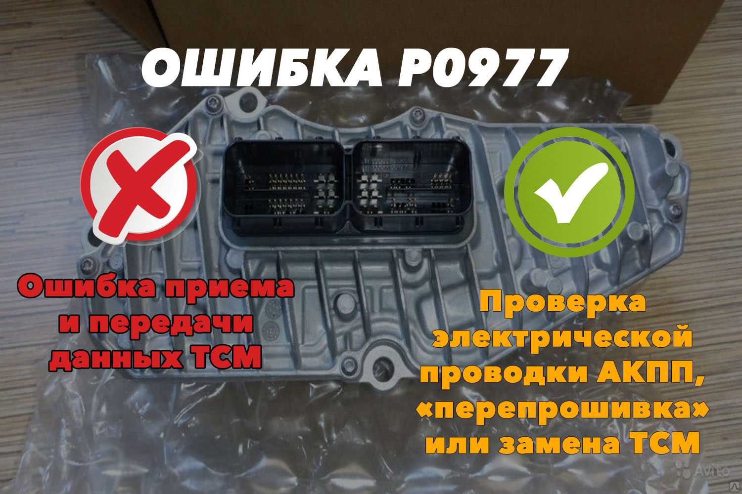 Обычно P0977 влечет за собой нарушение работы коробки передач. В особо тяжелых случаях транспортное средство становится обездвиженным, так как могут просто-напросто перестать включаться передачи. Решение проблемы целиком и полностью зависит от того, чем было вызвано появление P0977. Для начала необходимо связаться с модулем TCM напрямую с помощью сканера, если этого не удается сделать, тогда следует выяснить причину, почему модуль отказывается принимать и посылать данные