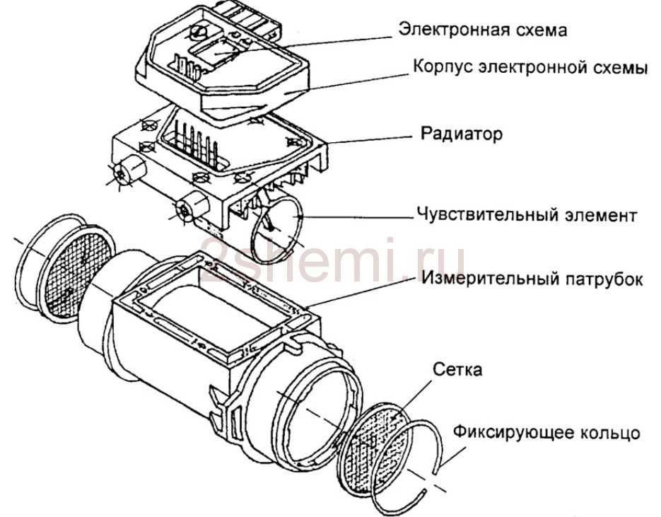 Когда в систему поступает воздух, то первая нить охлаждается, и при этом уменьшается величина сопротивления тока в цепи. Чем больше воздуха поступает, тем сильнее процесс охлаждения. Вторая нить является контрольной, и сопротивление ее не изменяется. Разница сопротивления между первой и второй нитью фиксируется ЭБУ, на основании чего принимается решение о необходимости обогащения или обеднения топливной смеси. Если он ломается, то двигатель при этом продолжит работать, но только в таком режиме, при котором топливная смесь будет смешиваться в неправильных пропорциях.