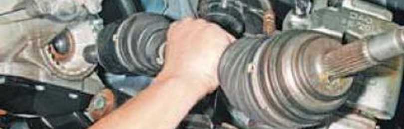 После выдергиваем привод целиком из КПП. Замените поврежденные чехлы; — вал привода колес не должен быть деформирован. Чехол не должен проворачиваться на шарнире, а хомуты — на чехле.